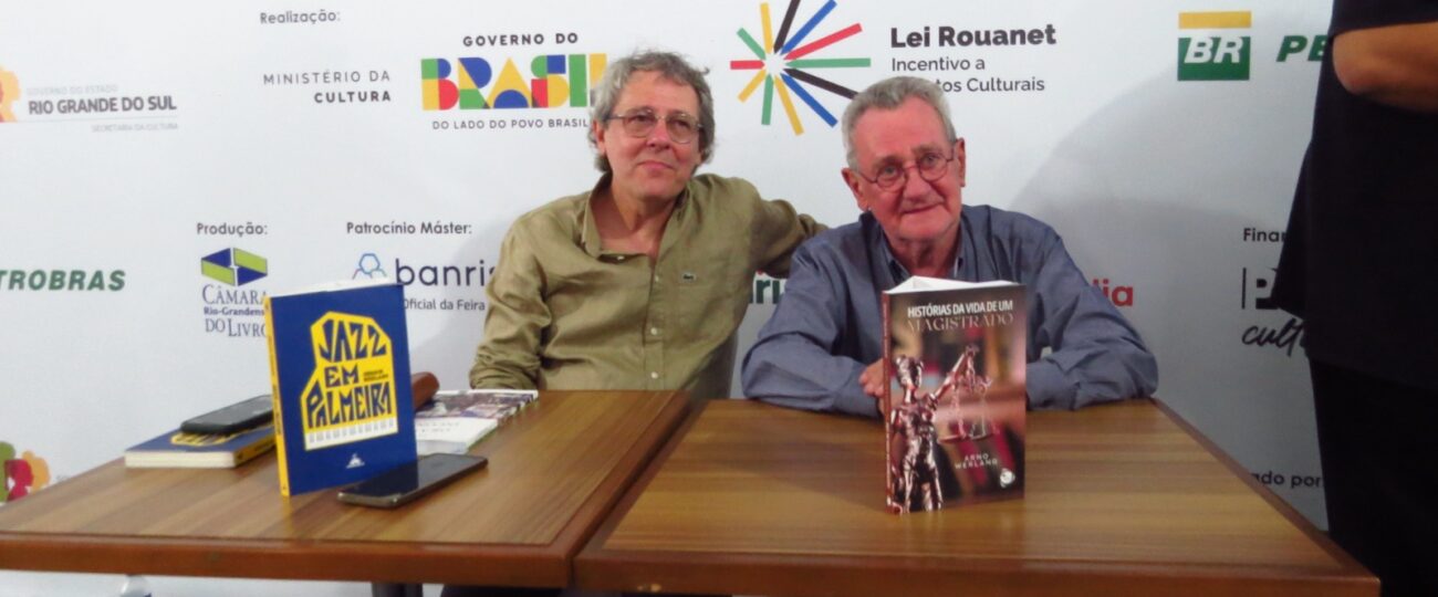 Magistrado aposentado, Arno Werlang, dedicou quatro décadas aos autos, sentenças e diversos dilemas éticos do Direito. Naquela manhã, ele segurava pela primeira vez um livro só seu: Histórias da Vida de um Magistrado. Ao seu lado, estava o filho, Gérson Werlang. Músico, professor universitário e escritor com carreira consolidada, ele construiu um caminho híbrido entre criação artística e investigação acadêmica. Na Feira do Livro de Porto Alegre, ele lançava seu romance mais recente, Jazz em Palmeira.