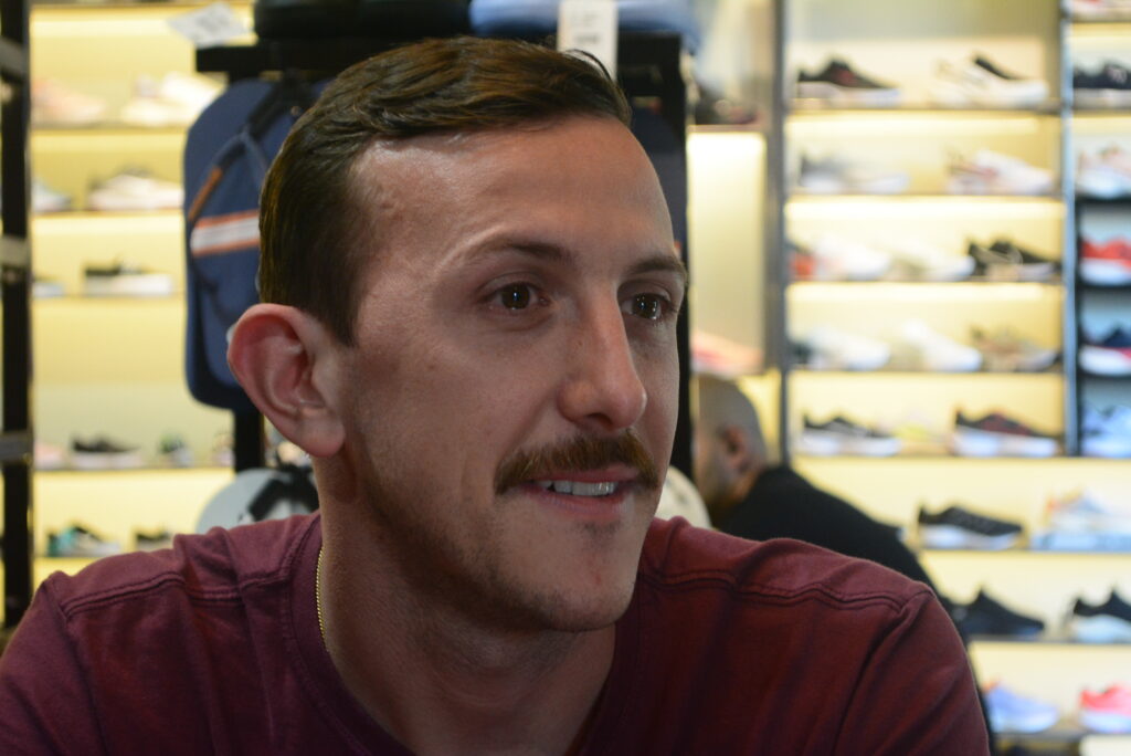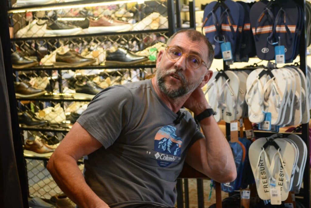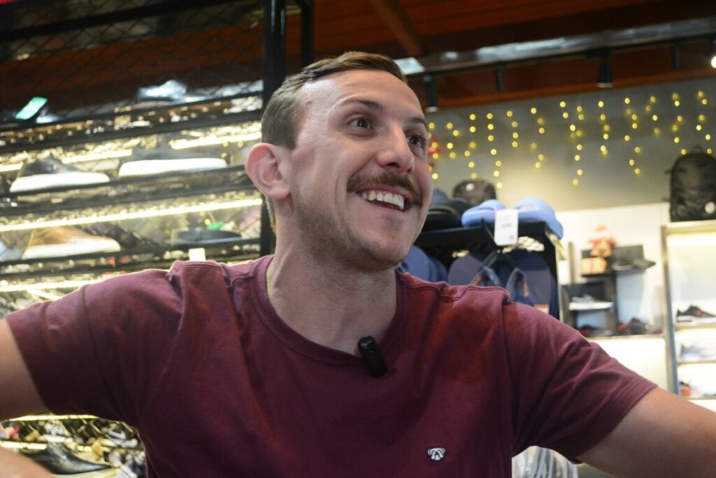 “No início, eu ficava muito chateado quando alguém vinha aqui olhar um tênis, experimentava o meu tênis e comprava na internet. Hoje, sabe o que que eu faço? Eu dou o sinal do wi-fi e dou o café. Não tem, cara. Não tem como eu competir mais com isso”.