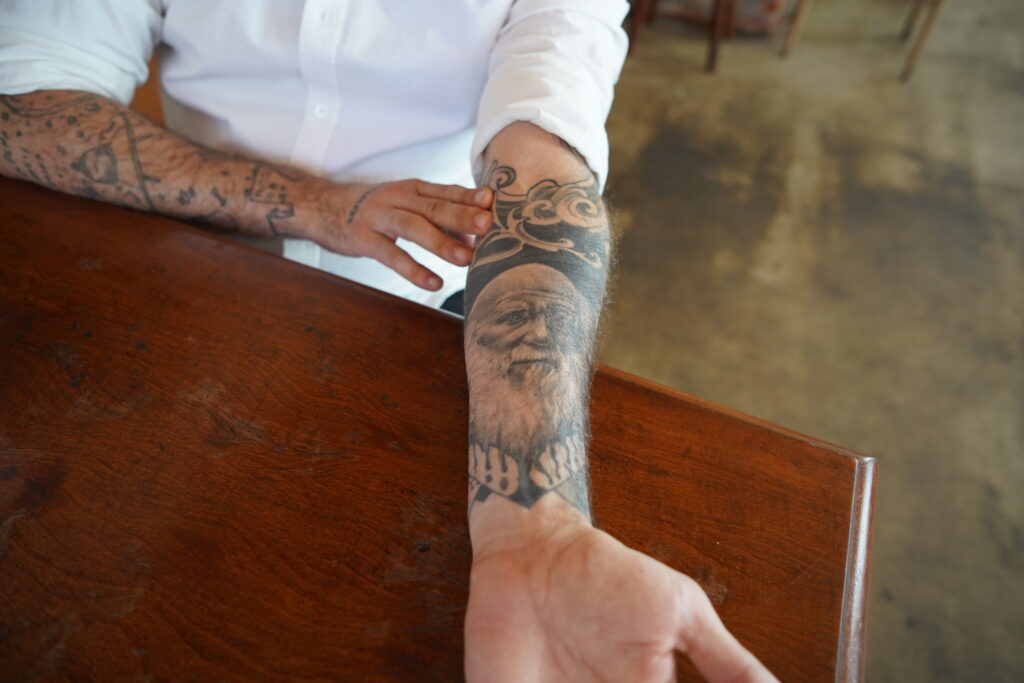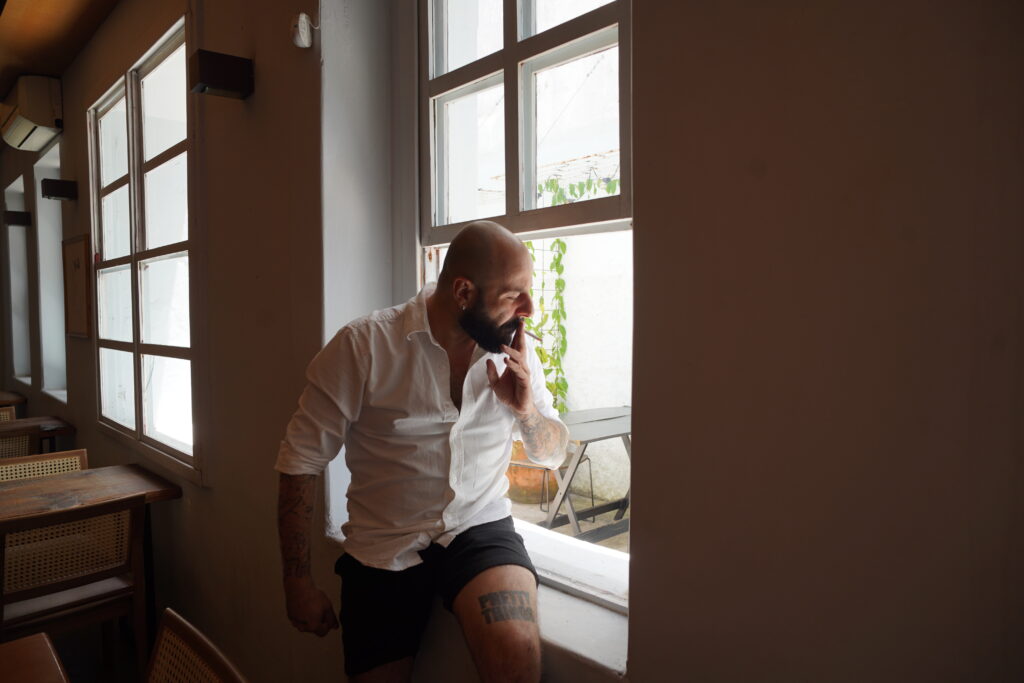 “Só minha mãe me chama de Maurício, pode me chamar de Mauri”, afirma. Barba fechada, careca aparente. Uma camisa de linho branca e bermuda para amenizar o calor, deixando à mostra todas as tatuagens que tem em seus braços e pernas. O homem da serra gaúcha parece já ter se adaptado ao clima da Capital.