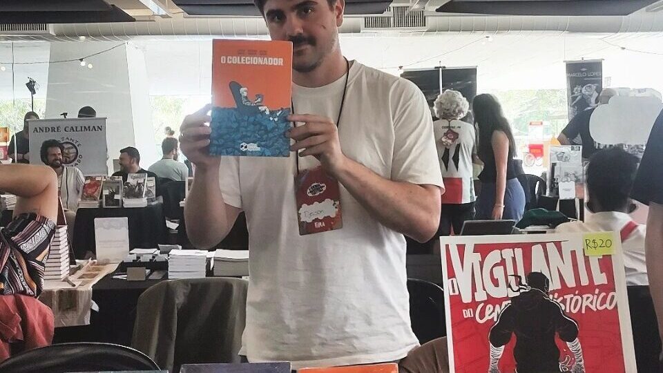 “Se você já colecionou alguma coisa, você e o Érico vão se perguntar, juntos, o que é colecionar, por que colecionar e onde esse colecionismo vai parar. Porque, desculpe o aviso: um dia, essa coleção vai existir e você não”. Assim começa o prefácio de O Colecionador, mais recente HQ do selo independente Dom Mordaz, em parceria com a Editora Hipotética. Escrita por Djeison Hoerlle e ilustrada por Dieferson Trindade, a obra apresenta Érico, dono de um sebo em Porto Alegre, apaixonado por quadrinhos. Entre o humor cínico e desânimo do dia a dia, ele precisa enfrentar uma jornada de desapego da própria coleção.