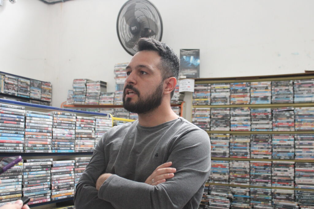 Francisco Cunha, de Viamão, representa outro tipo de cliente, o de longa data. Conheceu a Twin “lá no começo”, quando ainda era locadora, e viu de perto a transição para o modelo exclusivamente de venda. Frequenta a loja há cerca de seis anos, principalmente quando procura algo que os serviços de streaming não oferecem. “Eu procuro filmes que não encontro nos streamings”, afirma. Usa as plataformas digitais, mas não abre mão da mídia física, sobretudo quando o título tem valor afetivo. “Pra quem é mais da nostalgia, é outra coisa ter o filme na mão.”